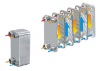 How Heat Transfer WorksHeat transfer occurs when there is a difference in temperature between two mediums. Heat will travel from the hot source to the cold source. The rate at which the heat transfer occurs at is determined by many factors such as the heat conductivity of the two materials andthe difference in temperatures of the two mediums. Convectiuve heat transfer occurs when the materials are moving against each other. Plate heat exchangers have significantly good heat transfer rates because they use metal plates which have high heat conductivity rates and the plates are extremely thin. The plate heat exchangers also achieve high amounts of heat transfer through convective forces with both working fluids. With large temperature differentials, great amounts of heat transfer can be achieved using a plate heat exchanger. CorrosionCorrosion is usually how these units will fail. Use fluids with reasonable pH levels to ensure a long lasting life. Hard water will corrode faster than regular water. (Use distilled if possible; Distilled should never corrode it) Salt water will corrode stainless steel very fast. It is recommended to clean the exchanger often if you are using corrosive fluids. Normal usage (non-corrosive fluids) should expect 10-20 years of life. Fluids containing chlorides will corrode the unit quickly. ApplicationsThis is an extremely popular unit for wood burning furnaces, radiant floor systems, refrigerant systems, straight vegetable oil conversions, beer chilling, air conditioning system and solar water heating systems. It will work for any application in which the desired result is for two fluids (liquid or gas) to exchange heat. How it WorksFluid A passes from the port on the left of the heat exchanger through every other channel created by the plates to the opposite end port on the left of the heat exchanger (looking at it the long way). Fluid B passes from the port on the right through the other channels created by the plates and comes out the other port on the right side. The fluids are essentially touching each other through the plates and heat is transferred from the hot fluid to the cold fluid. (but the fluids do not mix)
